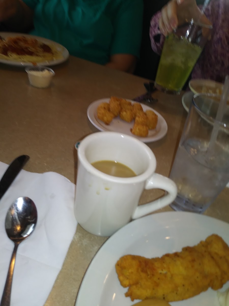 Ordered one of my favorite dishes, "Open face Roast Beef/gravy potatoes with 1 side dish, green beans for me. As for hubby his order, 2pc chicken broasted chicken with 2 sides. Our g-baby had, butterfly shrimp, with 2 sides. Very, very clean inside and outside. Great seating for all. Wonder staff. ⭐⭐⭐⭐⭐